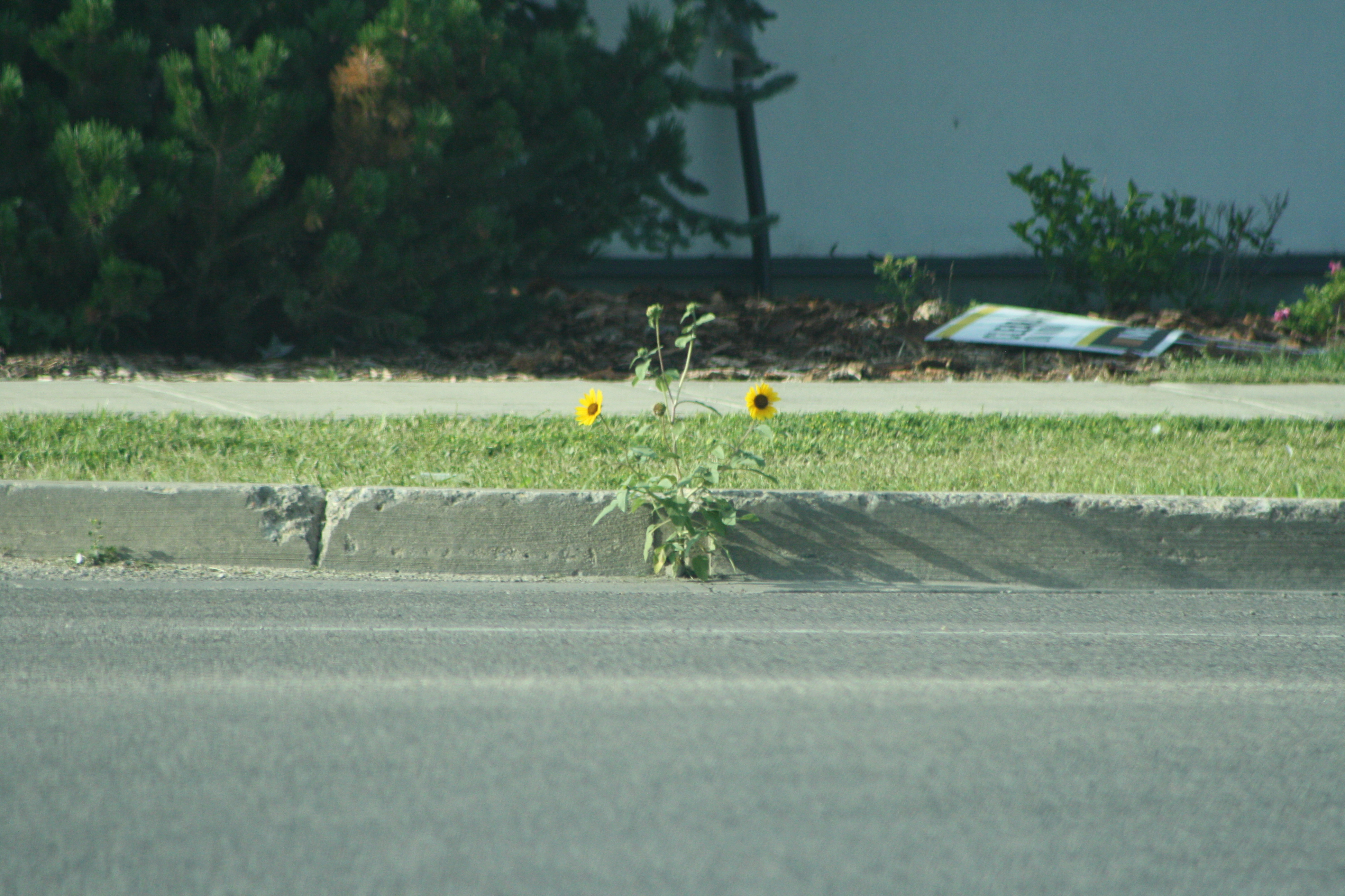 I took the above photo yesterday. I left the house the previous day and headed to my local retail outlet to pick up a few things for the house. Before I turned the corner into the parking lot, I came to a stop sign and noticed that this yellow daisy was sprouting, right through the concrete curb.