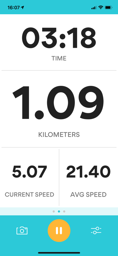 As you can see, my pace reads as 3:02/km, which is why I say I completed the kilometre in 3:02 instead of the 3:18 that’s displayed in the previous photo. The previous photo is the total time for the 1.09 kilometres. I’m hoping to shave it down to below the 3:00 minute mark before starting longer journeys throughout the summer.