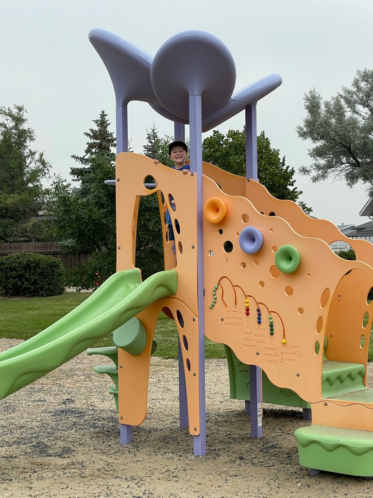 It didn’t take long after we arrived at grandma’s house to want to rush out the door and go to the park. There happens to be one located about 30 seconds down the sidewalk from my mother-in-law’s house. After over three hours cooped up in a car seat, he needed to blow off some steam.
