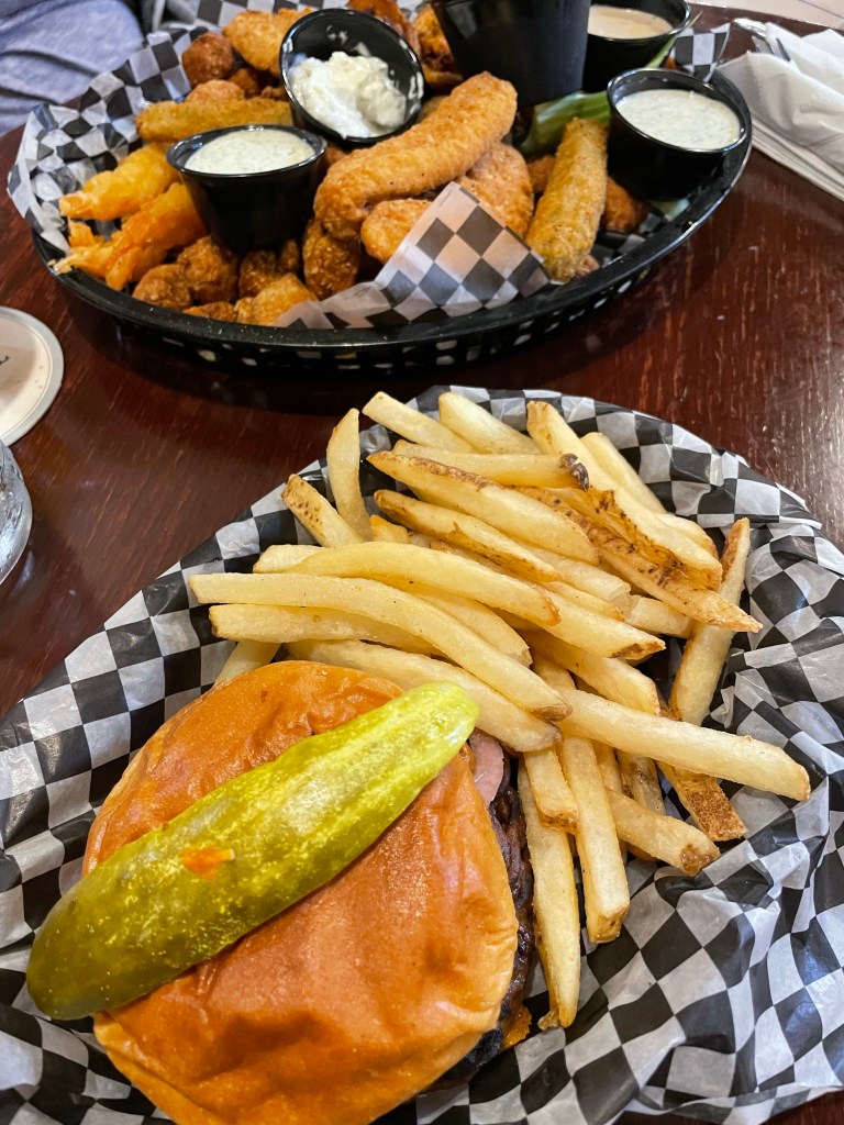 My eye appointment went as well as one could expect it. You know, for having steel needles jammed into ones eyes. My wife took advantage of my appointment to enjoy a brief nap. Then we had supper at my favourite watering hole: Finn’s Irish Pub. We shared an appetizer platter and some fried and I had my customary burger and pint (I may or may not have enjoyed a highball as well, since they were on special).
