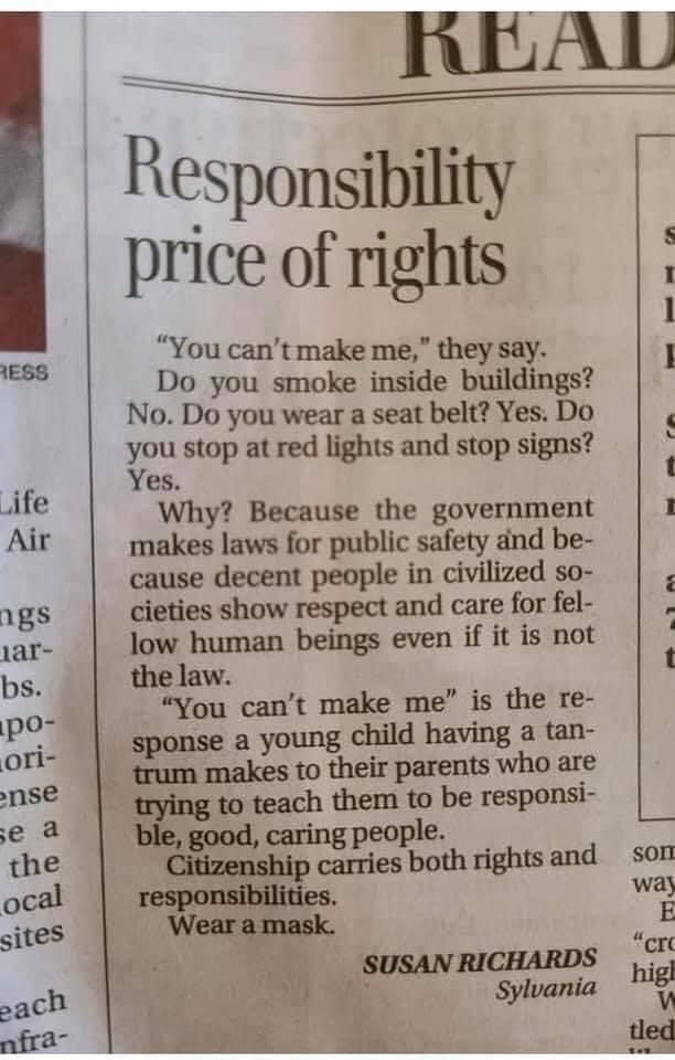 1. I agree, and it’s the extremes to which I’m referring in my post. For example, I have the one friend who’s completely devoted to family and their safety, yet ignores/refuses any of the health regulations we have in place up here (or had, now). And as much as I would view that as free choice, it’s when they start verbally attacking/denouncing those who have chosen to vaccinate and/or wear a mask.