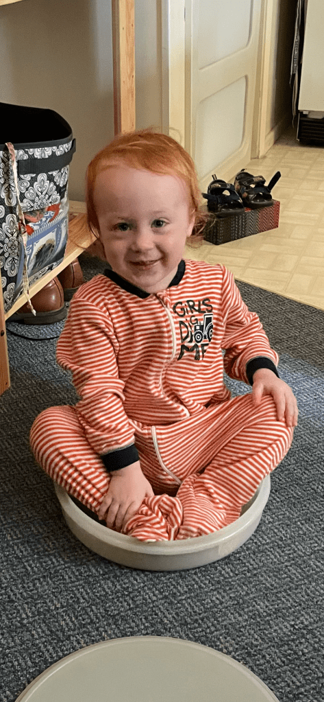 A nice, simple feel-good post today. My toddler was playing with a bunch of stuff that aren’t his toys, as kids are want to do, when he sat cross-legged in a cake dish borrowed from his grandmother. I thought it was a cute representation of a meditating Buddha. Enjoy!