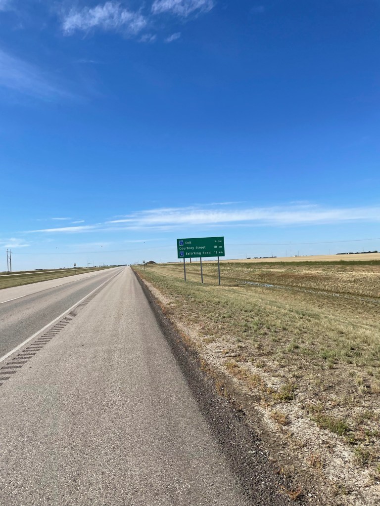 Since I had to make up some Lowry time, I set out with the goal of reaching 60 kilometres, This would be the first time this summer that I go beyond 20 kilometres, and the first time using my new iPhone 12 to track it through Runkeeper. I made my way over to Winnipeg Street then cut south on Arcola, all the way to the Regina Bypass. The Bypass was built in recent years and circumvents the main portion of the city. It makes for a significant route.
