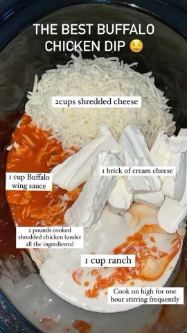 It’s a rare occurrence to look in my refrigerator and NOT find a bottle of hot sauce, Buffalo Sauce or both. And some of my favourite snack foods of choice involve Buffalo Chicken in some way, shape or form. This is why a recent concoction prepared by my wife has had me drooling and begging for more. I’m talking about a slow-cooker Buffalo Chicken dip. See the below image…