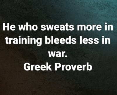 I found this little gem some time ago while wandering the World Wide Web. As it pertains to martial arts training, it suggests a pretty important lesson. That being that the more you push yourself and sweat in training, you’re less likely to get the shit beat out of you in an actual fight. How nice of me to make the lesson so much less elegant, eh?