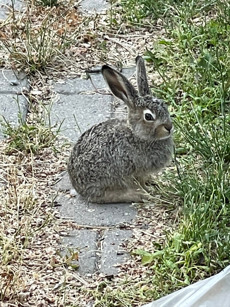 Some may comment that this could have ben any rabbit, and they would be right. Maybe it is just some random rabbit. Damn… Try saying THAT three times, fast… Random rabbit… Maybe it’s just my French tongue. But I digress… We put out some timothy hay pellets and watched in amazement as the rabbit followed Nathan around the yard as he placed a few small piles here and there. The rabbit partook of some and hopped around, staying close to us the whole time, before dashing off between the garage and the neighbour’s property.