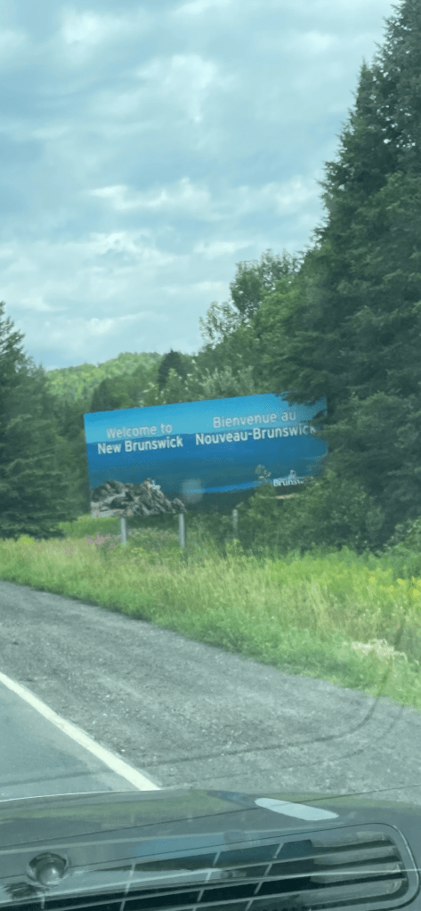 We got on the road and drove through a fair amount of rain for a while but it didn’t dampen our spirits (see what I did there?). We made a number of stops along the way, including a chocolatier and several Tim Hortons. We reached the New Brunswick border at about mid-afternoon, local time…