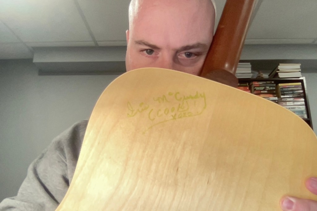 I was in Edmonton overnight and while I was visiting with my aunt, she showed me her guitar. I tuned it up and played a few bars, which apparently made an impression on her. I returned to my hotel room that night and picked her up for lunch the following day. After lunch, we returned to her apartment and discussed the elephant in the room; she had cancer and it was terminal. She convinced me to take the guitar and make use of it, whether that meant to play it or sell it. I agreed to take it on one condition: she had to sign her name on the back so that it could never be sold and would forever stay in our family. She agreed…