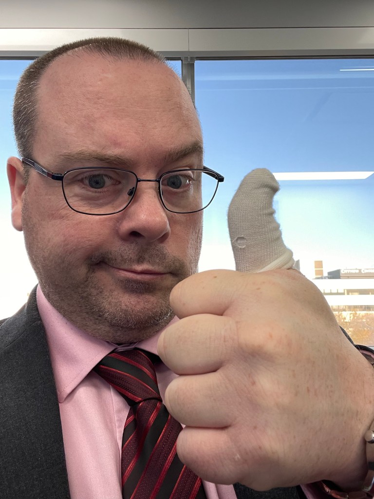 The irony is that it seems pretty stupid and menial. It’s a thumb. A cut on a thumb. It wasn’t a traumatic injury, I’m not laid up for weeks and I don’t require any follow-up therapy. So it amazes me how such a small injury can be so debilitating to one’s daily routine. It also reminds me to pay fuckin’ attention to the task at hand, pun fully intended. Another few days and the bandage can be removed as the stitches will dissolve on their own. Here’s hoping there’s no further complications and I can get back to quasi-normal. ☯️