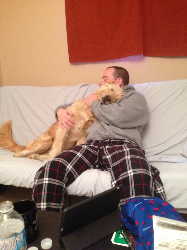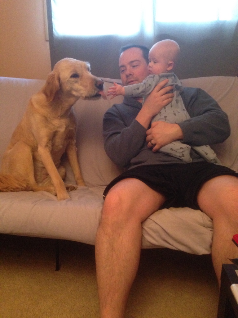 Soon after, my wife and I welcomed our first son, Nathan. Molly took to Nathan and became an ad hoc protector. She would sleep under his crib at night and curl up close whenever I’d have him in his slumber chair. Molly followed everywhere we went and we even had a futon she slept on, which included a nightly routine of tucking her in. She became an immediate member of the family and everyone who met her on our walks took to her immediately and loved her. Molly was always gentle, always quiet and I can count on one hand the number of times she ever barked for any reason. I used to love coming home from work where she would bolt out the door and chase each other around the empty lot until my chunky ass got tired.